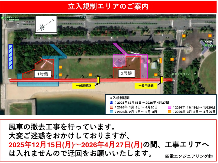 新舞子マリンパークの風力発電設備の撤去に伴う利用規制について